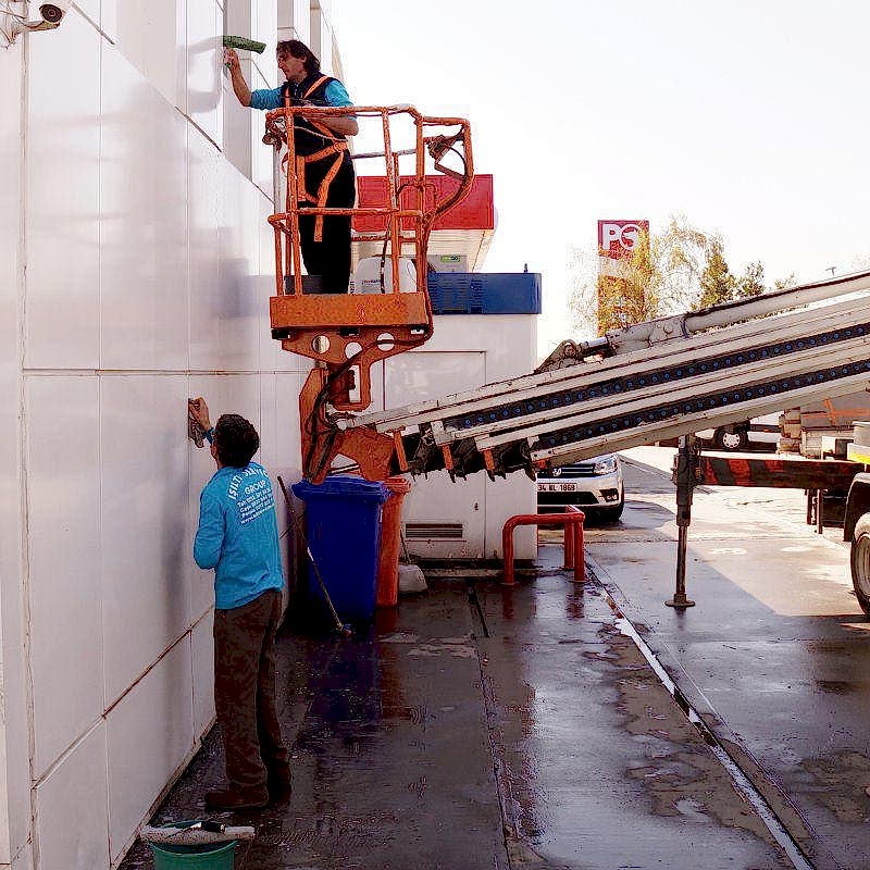 Benzin istasyonu temizliğinde kimyasal kullanımı. Kullandığımız temizleyiciler, çevre dostudur. Zararları en minimize düzeydedir. Korozyon oluşturmaz. Yağı ve kiri hızlı söker atar. Kolu ve bedeni yormaz.