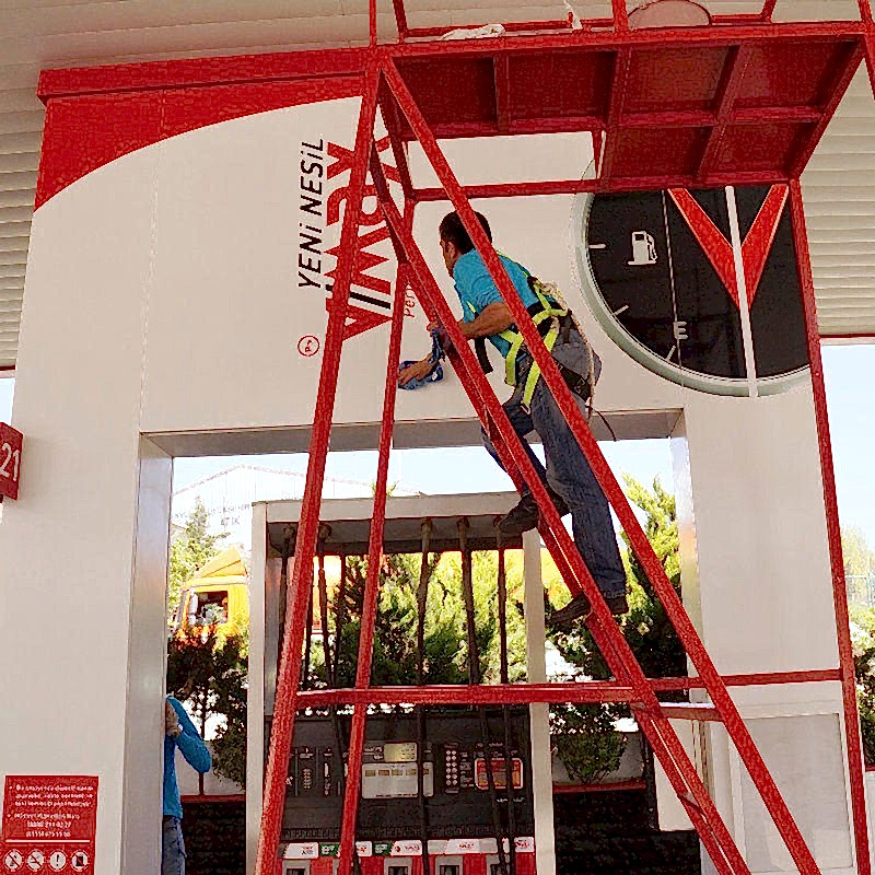 Benzin İstasyonu Temizliği Çalışmaları; önce çalışılacak alan belirlemesi yapılır. Sonra şerit, uyarı, ikaz levhaları ile dikkat çekilmeye çalışılmalıdır. Vinçli tavan silme öğleye kadar bitirilmeye çalışılmalı. Öğleden sonra diğer yüzeyler temizlenmelidir. Mümkün ise daha önce istasyonun temizliğinde bulunmuş personeller çalıştırılmalıdır.